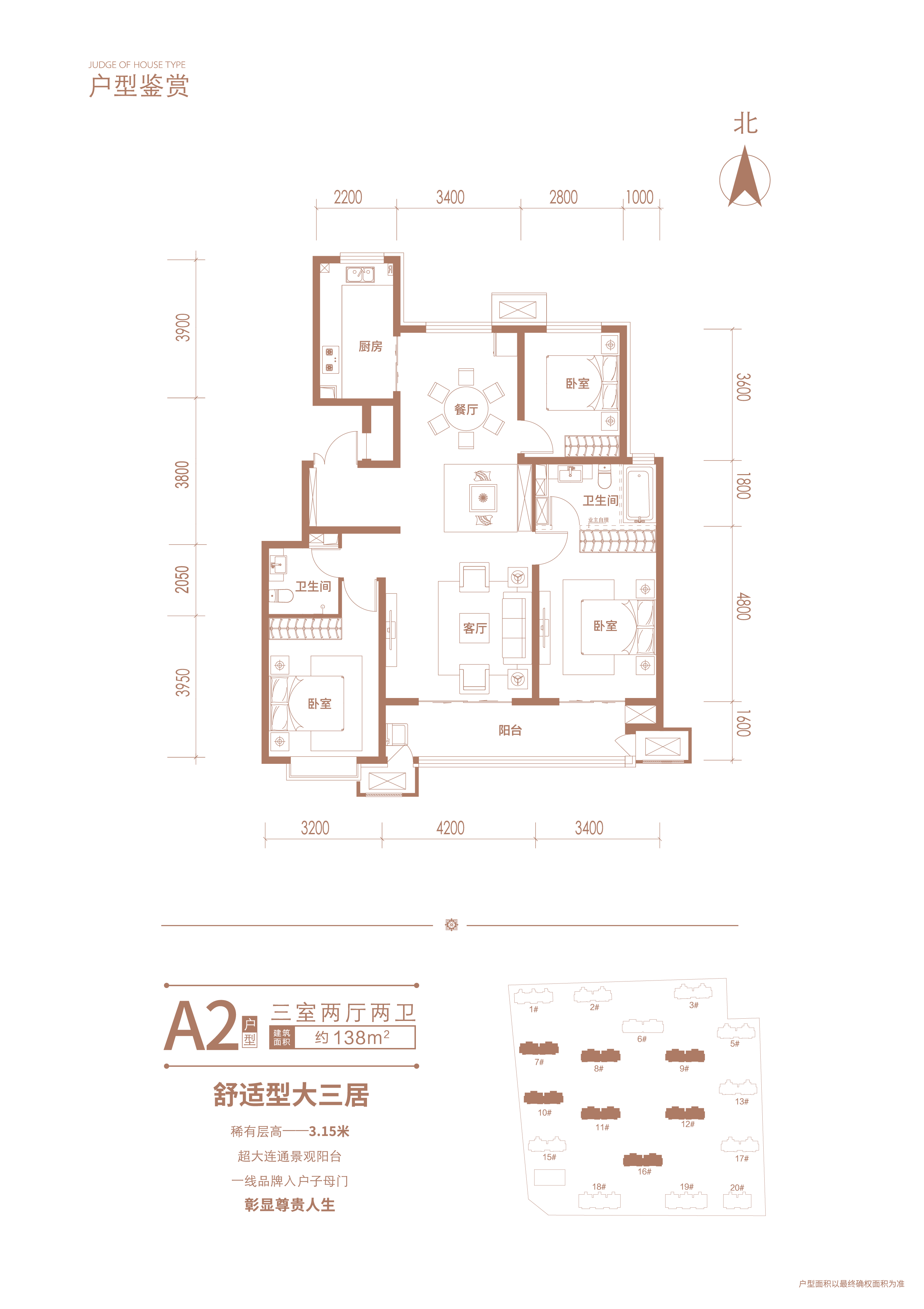 奢侈豪华大三居 稀有层高——3.15米 超大连通阳台,超大进深景观阳台——1.8米 一线品牌入户子母门 彰显尊贵人生