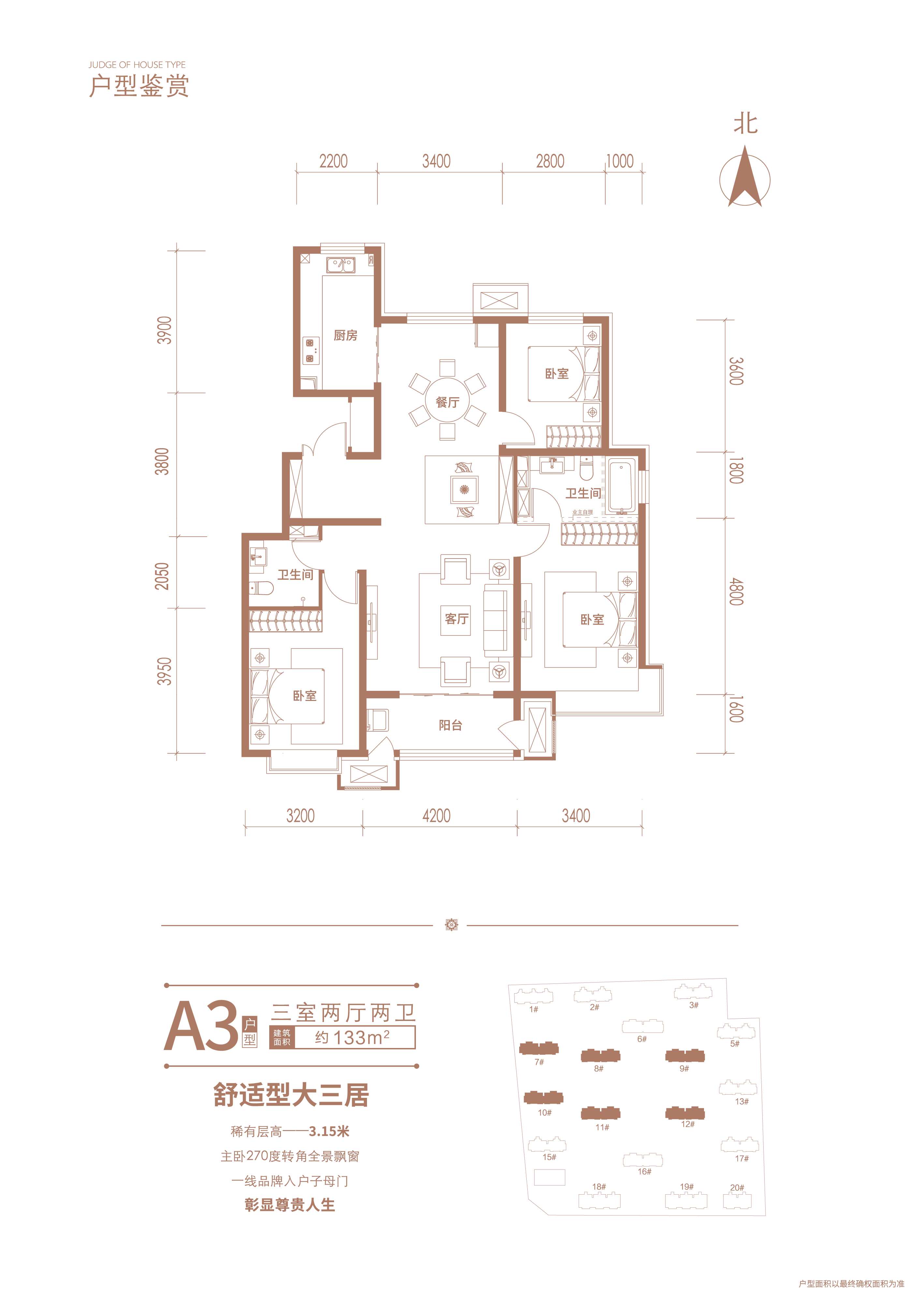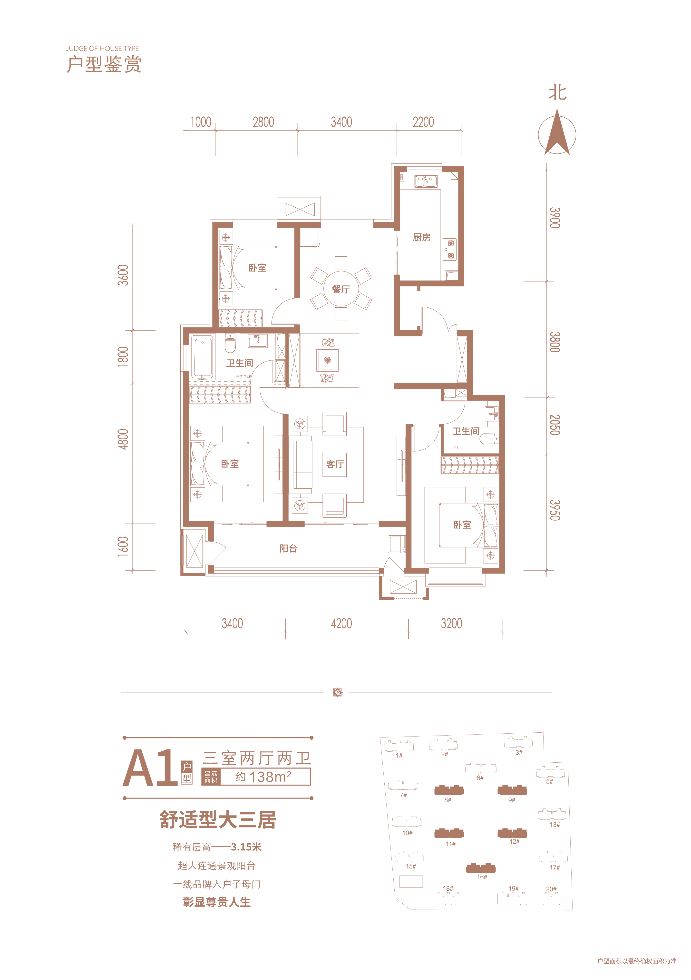 舒适型大三居 稀有层高——3.15米 超大连通景观阳台 一线品牌入户子母门 彰显尊贵人生